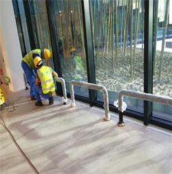 • 辦公區(qū)中庭玻璃處防撞柱現(xiàn)場(chǎng)安裝施工項(xiàng)目